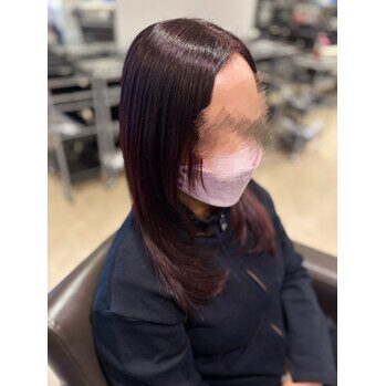 バイカルテトリートメントでケア+ツヤ感あるワンカラーでできる赤色♪ レイヤーも入れて動きのあるスタイルになりました^^